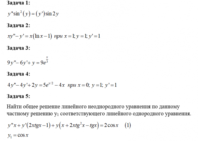 Для данных дифференциальных уравнений (задачи 1-4) найти общее решение (общие интегралы) или частные решения (частные интегралы) для указанных начальных условий.