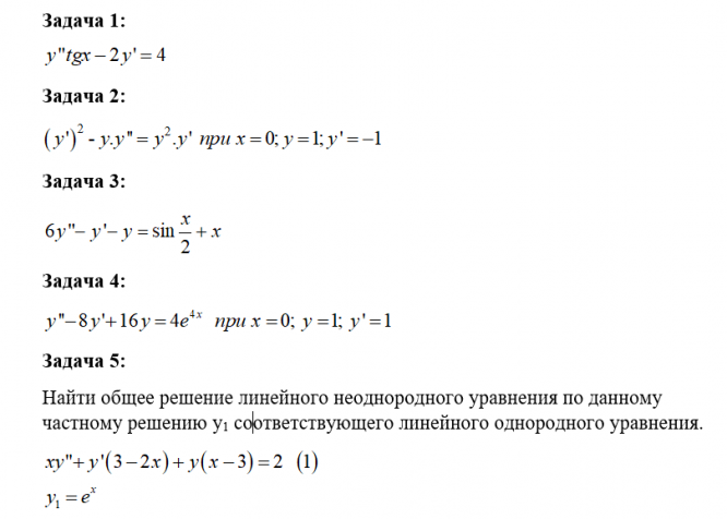 Для данных дифференциальных уравнений (задачи 1-4) найти общее решение (общие интегралы) или частные решения (частные интегралы) для указанных начальных условий.