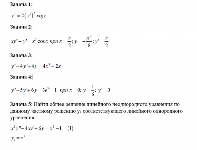 Для данных дифференциальных уравнений (задачи 1-4) найти общее решение (общие интегралы) или частные решения (частные интегралы) для указанных начальных условий.