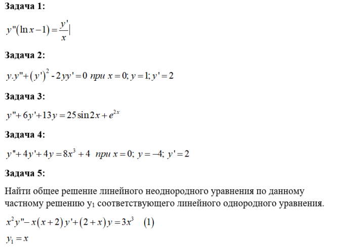 Для данных дифференциальных уравнений (задачи 1-4) найти общее решение (общие интегралы) или частные решения (частные интегралы) для указанных начальных условий.