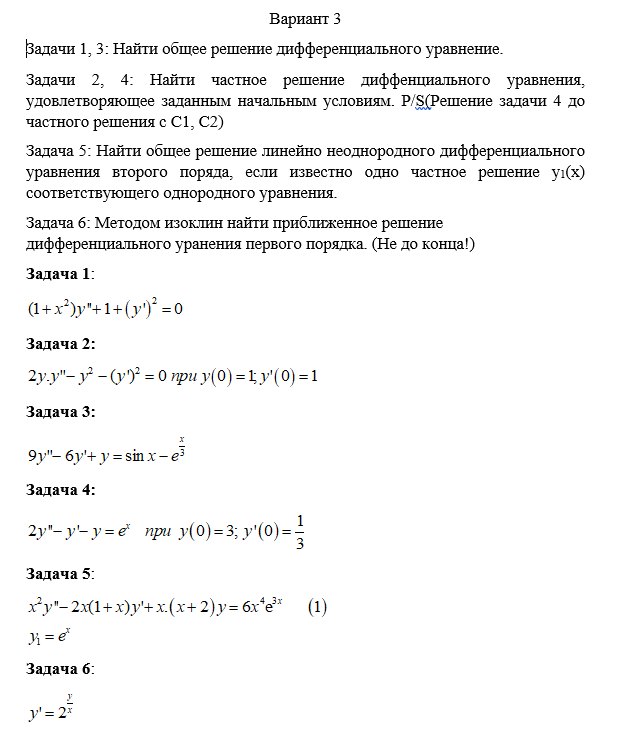 ДЗ 2: Дифференциальные уравнения вариант 3