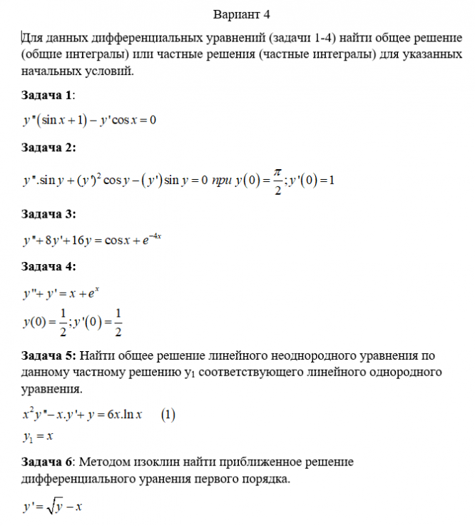 ДЗ 2: Дифференциальные уравнения вариант 4
