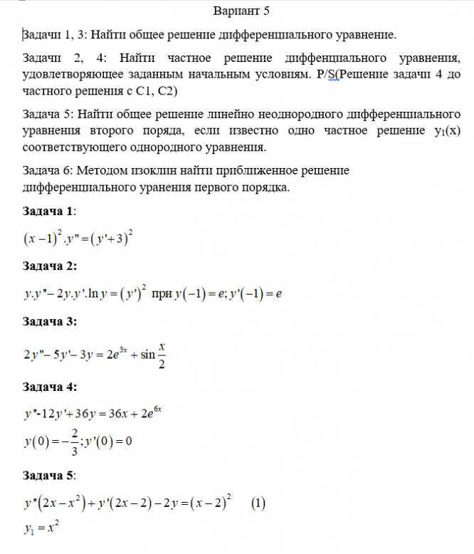 ДЗ 2: Дифференциальные уравнения вариант 5