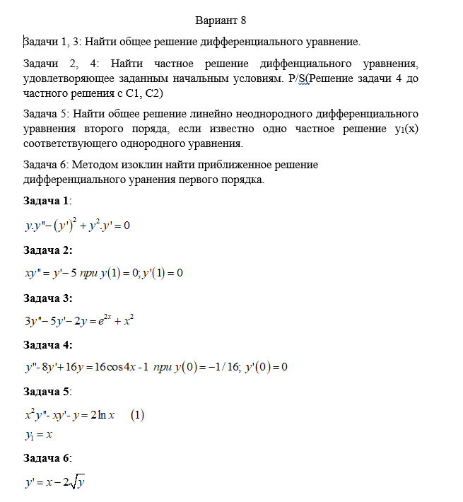 ДЗ 2: Дифференциальные уравнения вариант 8