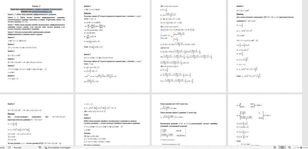 ДЗ 2: Дифференциальные уравнения вариант 12