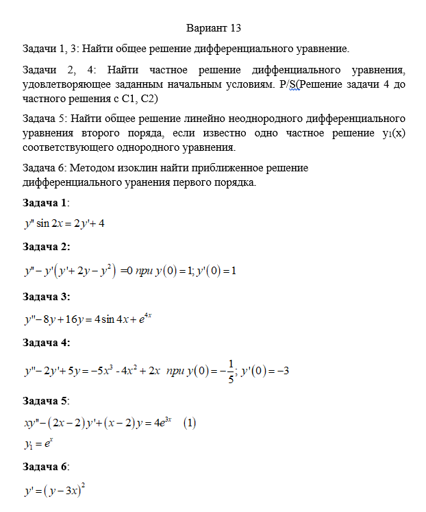 ДЗ 2: Дифференциальные уравнения вариант 13