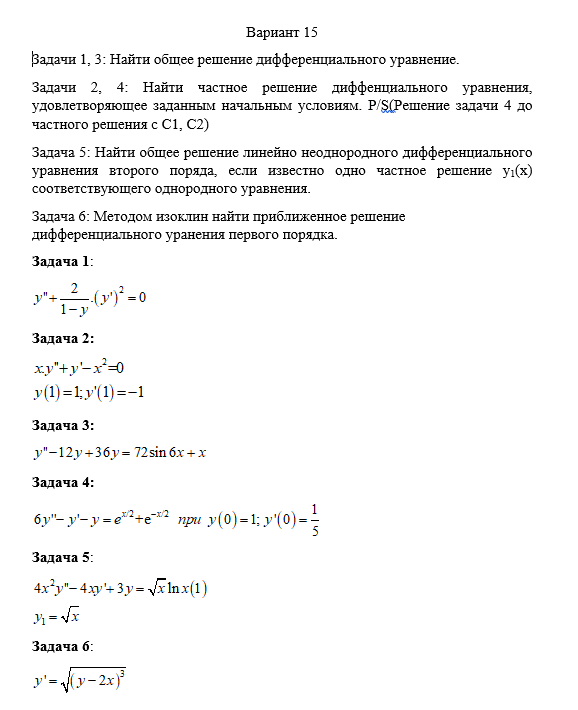 ДЗ 2: Дифференциальные уравнения вариант 15