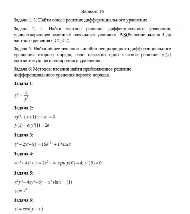 ДЗ 2: Дифференциальные уравнения вариант 16