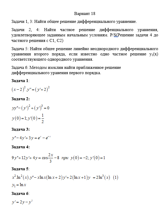ДЗ 2: Дифференциальные уравнения вариант 18
