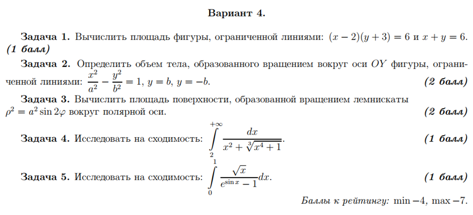 ДЗ 1: Приложение определенного интеграла вариант 4