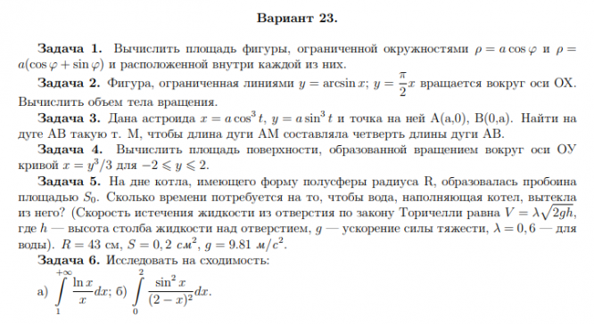 ДЗ 1: Приложение определенного интеграла вариант 23