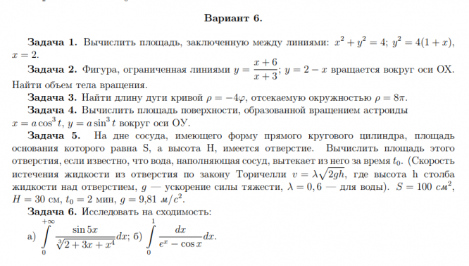 ДЗ 1: Приложение определенного интеграла вариант 6