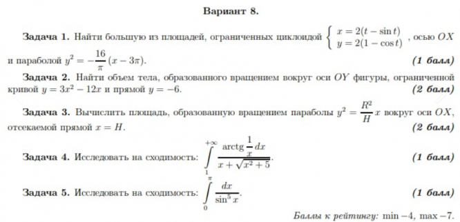 Типовой расчет №1 по математическому анализу, "Определенный интеграл", зачтено