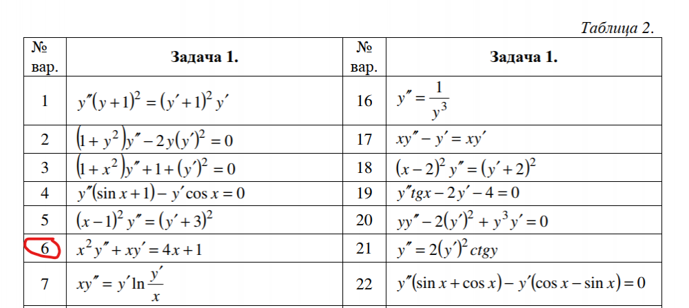 ДЗ 2: Дифференциальные уравнения вариант 6