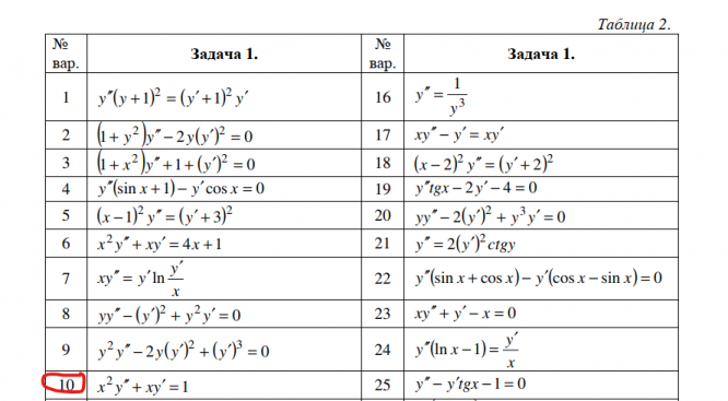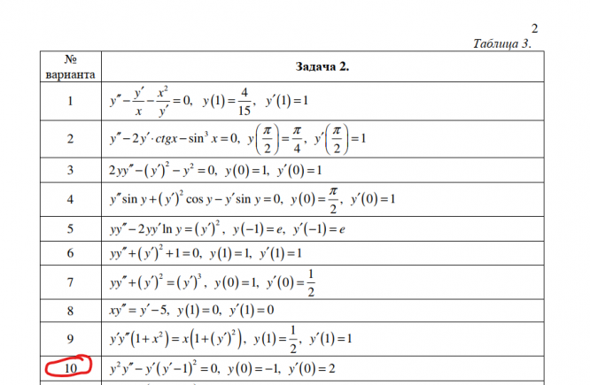 ДЗ 2: Дифференциальные уравнения вариант 10