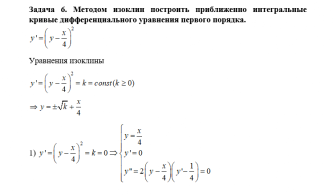 Задача 6. Методом изоклин построить приближенно интегральные кривые