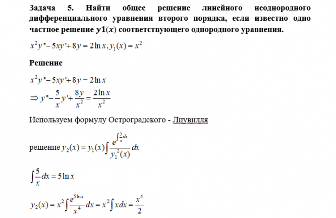 Задача 5. Найти общее решение линейного неоднородного дифференциального