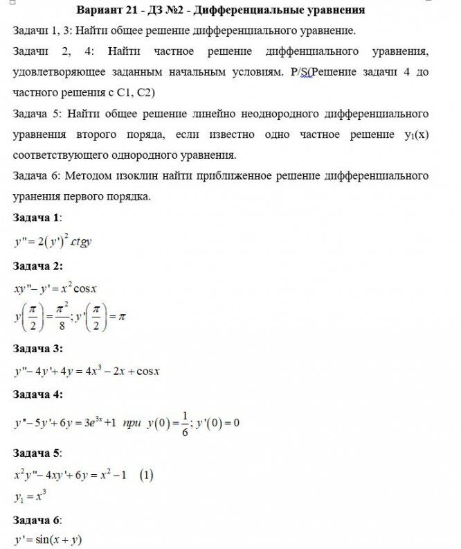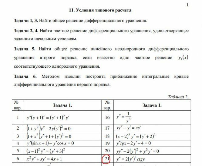 2022г Вариант 21 - ДЗ №2 - Дифференциальные уравнения - 6 Задач