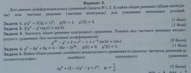 ДЗ 2: Дифференциальные уравнения высших порядков вариант 2
