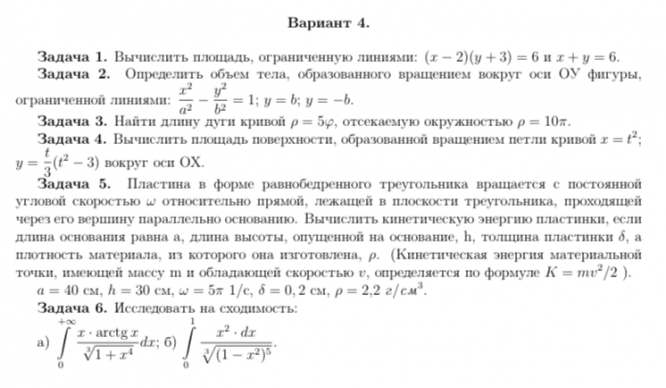 ДЗ 1: Приложение определенного интеграла вариант 4