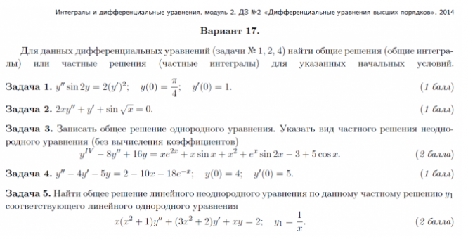 ДЗ 2: Дифференциальные уравнения высших порядков вариант 17