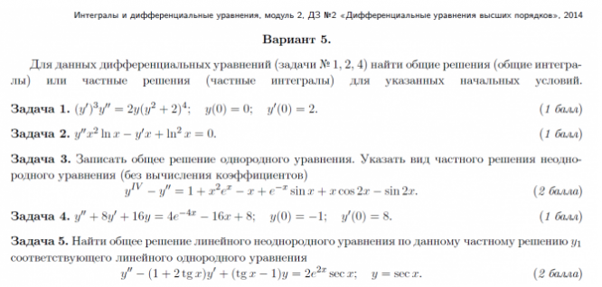 ДЗ 2: Дифференциальные уравнения высших порядков вариант 5