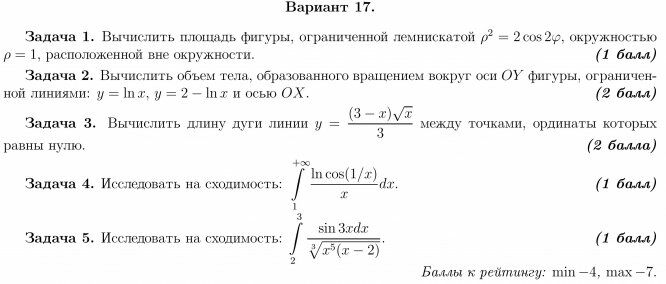 2023г Вариант 17 - ДЗ №1 - Определённый интеграл - ИУ, РЛ, БМТ, ФН12