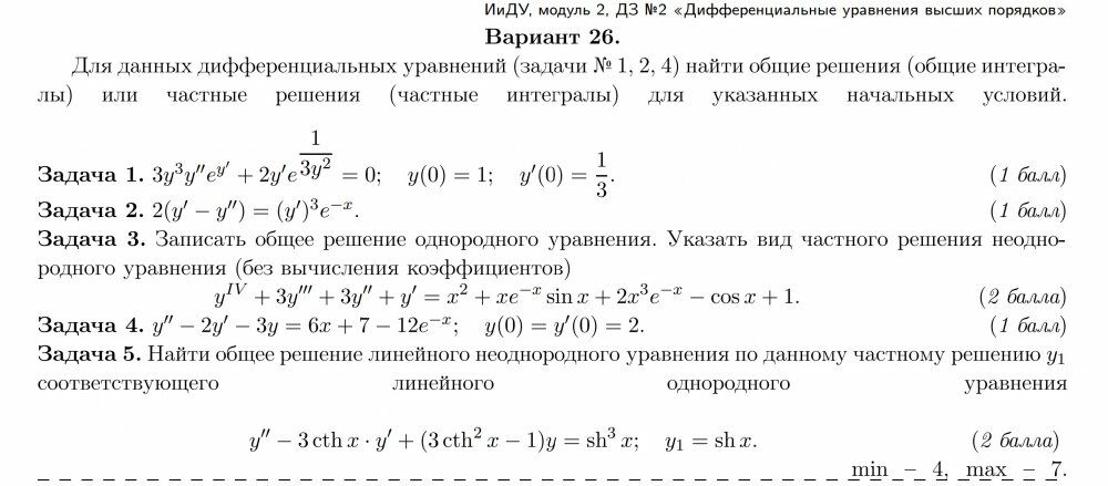 ДЗ 2: Дифференциальные уравнения высших порядков вариант 26