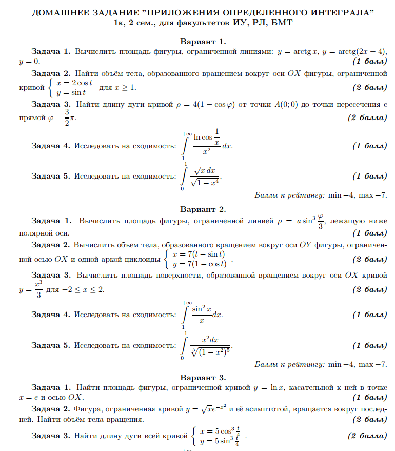 Решение Дз № 1 - Определенные интегралы (Все варианты) 🔥 ⚡⚡(кафедры ФН-1, ФН-2, ФН-12)