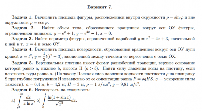 ДЗ 1: Приложение определенного интеграла вариант 7
