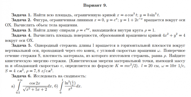 ДЗ 1: Приложение определенного интеграла вариант 9