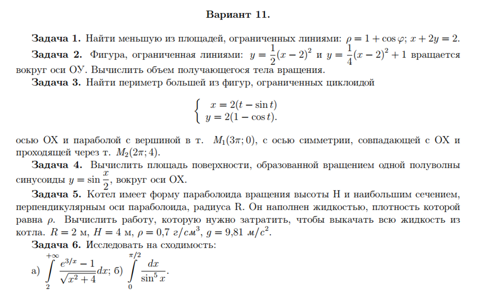 ДЗ 1: Приложение определенного интеграла вариант 11