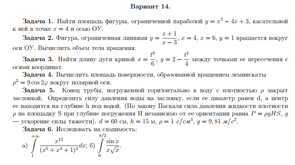 ДЗ 1: Приложение определенного интеграла вариант 14