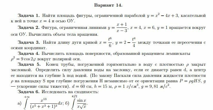 Вариант 14 - ДЗ №1 - Определённый интеграл - СМ, ФН, РК-4, ИУ-10 (нет задача 6)
