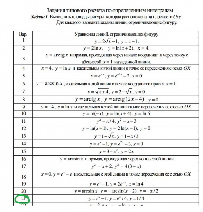 ДЗ 1: Определенный интеграл вариант 21