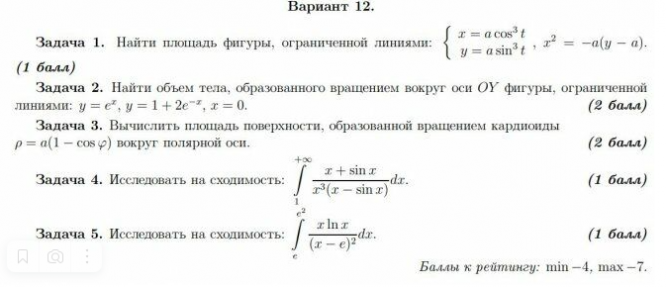 Вариант 12 - ДЗ №1 - "Приложение определенного интеграла" - 5 задач