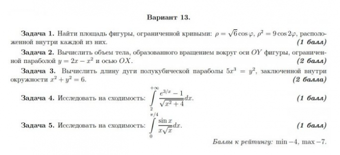 Типовой расчет №1 по математическому анализу, "Приложение определенного интеграла", зачтено