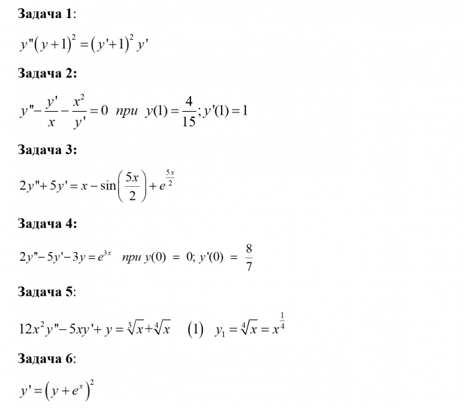 Задача 5: Найти общее решение линейно неоднородного дифференциального уравнения второго поряда, если известно одно частное решение y1(x) соответствующего однородного уравнения.
