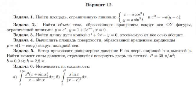 Вариант 12 - ДЗ №1 - "Приложение определенного интеграла" - 6 задач