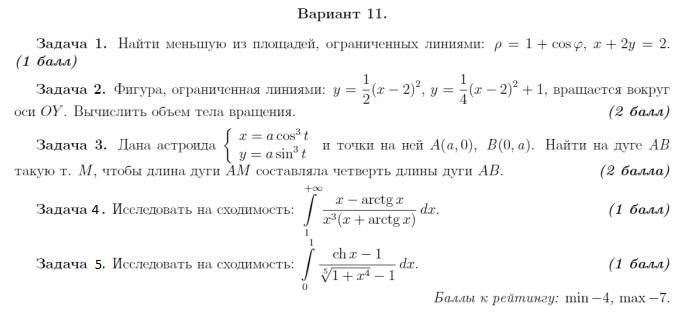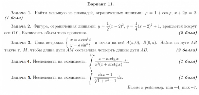 Вариант 11 - ДЗ №1 - "Приложение определенного интеграла" - 5 задач