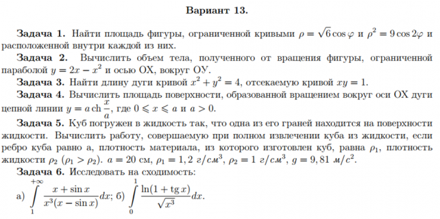 Вариант 13 - ДЗ №1 - "Приложение определенного интеграла" - 6 задач
