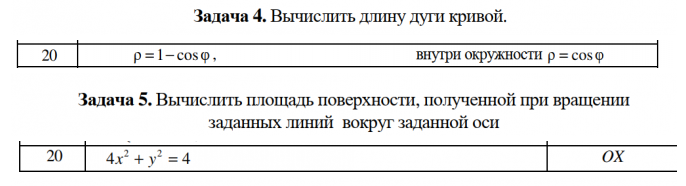 Вариант 20 - ДЗ №1 - "Определенный интеграл" - 6 задач