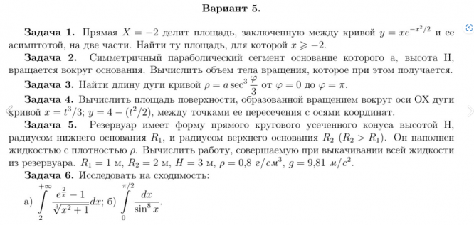 Вариант 5 - ДЗ №1 - "Приложение определенного интеграла" - 6 задач