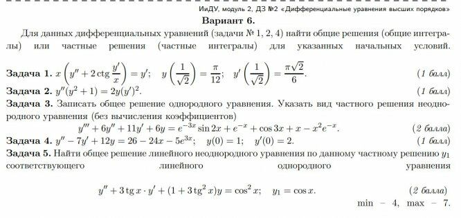 ДЗ 2: Дифференциальные уравнения высших порядков вариант 6