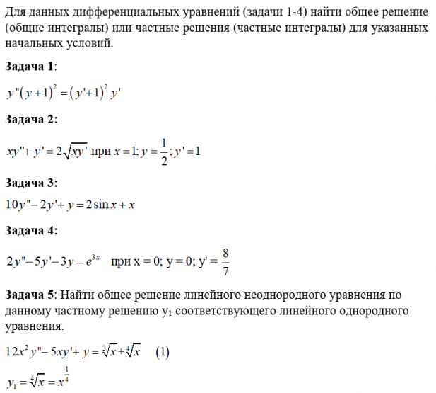 Вариант 1 - ДЗ №2 - "Дифференциальные уравнения" - 5 задач