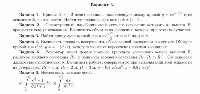 ДЗ 1: Приложение определенного интеграла вариант 5