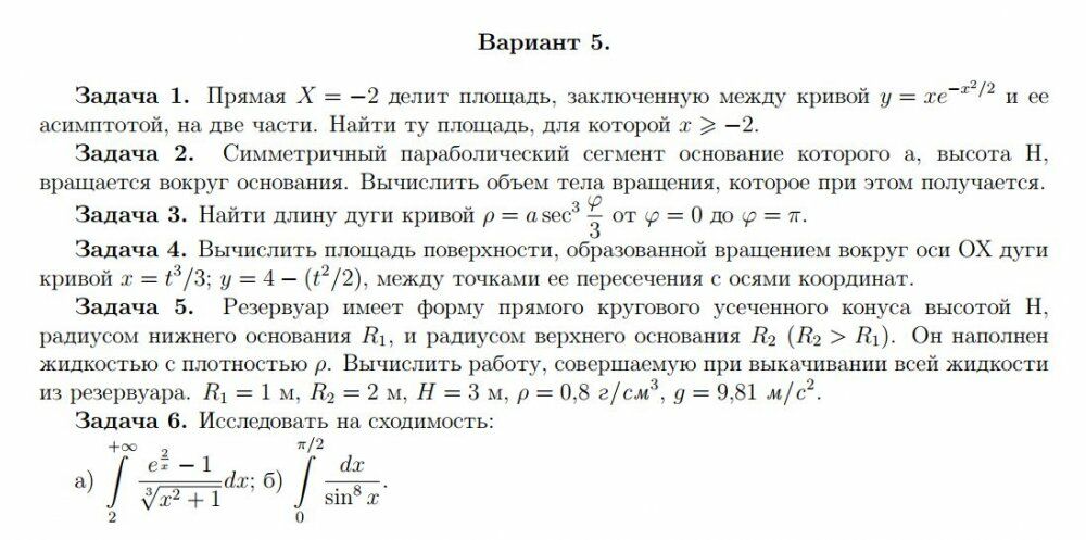 ДЗ 1: Приложение определенного интеграла вариант 5