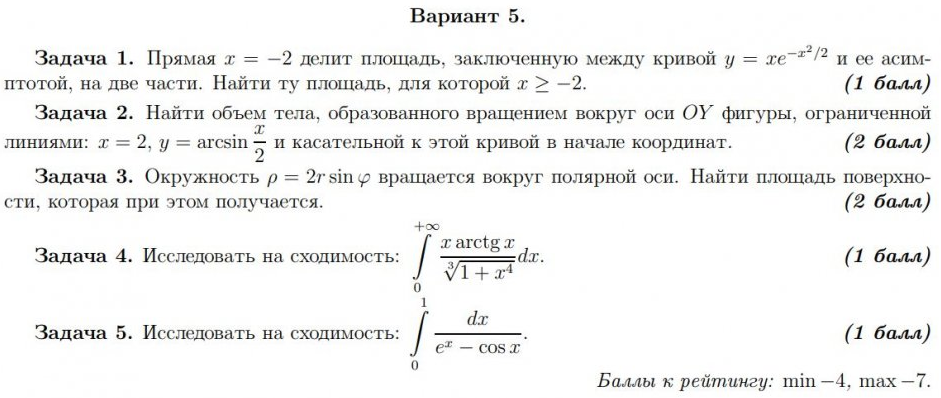 Типовой расчет по интегралам МГТУ математический анализ 2 семестр домашнее задание.