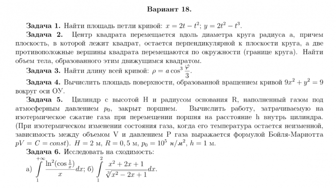 ДЗ 1: Приложение определенного интеграла вариант 18