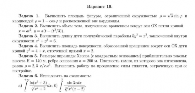 ДЗ 1: Приложение определенного интеграла вариант 19